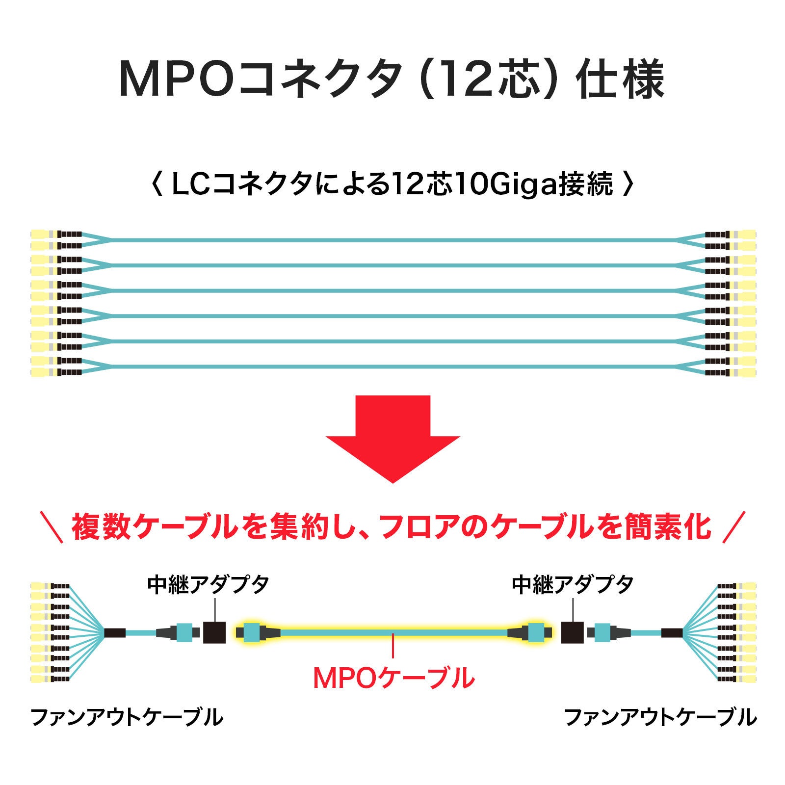 サンワサプライ株式会社(本社:岡山市北区田町1-10-1、代表取締役社長 山田和範)は、100Gbps対応MPO光ファイバケーブル「HKB-MPO12M3Bシリーズ(OM3)」「HKB-MPO12M4Bシリーズ(OM4)」を発売しました。