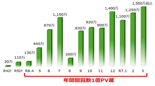 このたび、年間閲覧数1億PV(ページビュー)を突破しましたので、お知らせいたします。