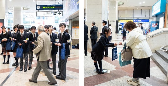 東京都は、4月15日(火)、東武東上線池袋駅南改札外にて、新生活を守る「春の痴漢撲滅啓発イベント」を実施しました。当日は、松本副知事、高際豊島区長、警視庁、鉄道事業者、高校生など約50名が出席し、複数の鉄道会社・路線が乗り入れている池袋駅を利用する方々に、啓発グッズを配布しながら痴漢被害撲滅を呼びかけました。
