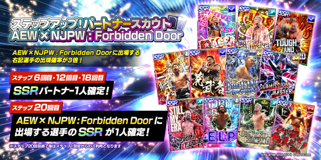“AEW×NJPW:Forbidden Door”開催記念として、大会に参戦するパートナーがピックアップ対象となった、ステップアップ10連パートナースカウトを開催中。