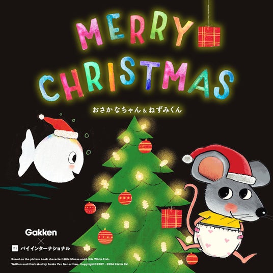 ▲2023年クリスマスのコラボ画像。『おむつのなか、みせてみせて!(パイ インターナショナル)』のねずみくんと、おさかなちゃんがサンタに!