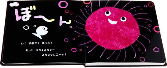 『ちっちゃな おさかなちゃん』の美しい黒い海や、ユニークでかわいい仲間たちの世界観はそのままに、「くすぐる」「ならぶ」「まねっこ」「ぎゅうぎゅう」「かくれんぼ」など、全部で10個のインタラクティブな遊びがコンパクトにまとまっています。