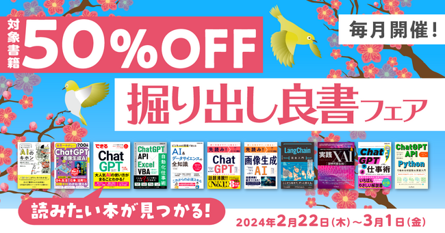 インプレスグループでIT関連メディア事業を展開する株式会社インプレス(本社:東京都千代田区、代表取締役社長:高橋隆志)は、対象の電子書籍が50%オフで購入できる「毎月開催!掘り出し良書フェア 2024年2月」を2024年2月22日(木)から3月1日(金)まで実施いたします。