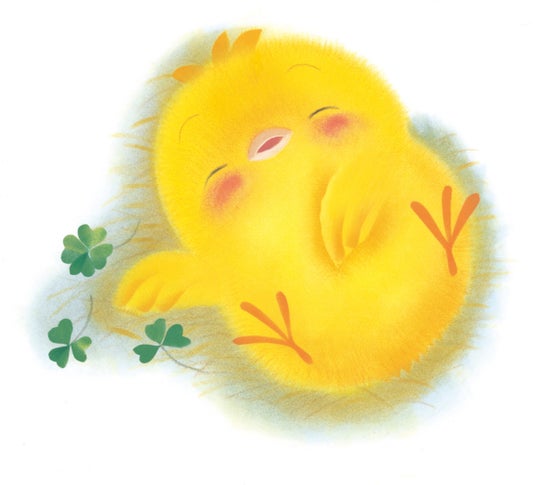 『ぴよちゃんの おやすみなさい』表紙の原画。ちょっと口を開けてぐっすりと眠っている姿は人間の子どもと同じ……。