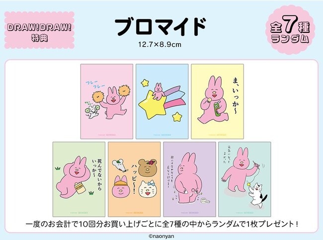 一度のお会計で10回分ご購入ごとに特典ブロマイド(全7種)をランダムで1枚、20回分ご購入で5枚プレゼント!