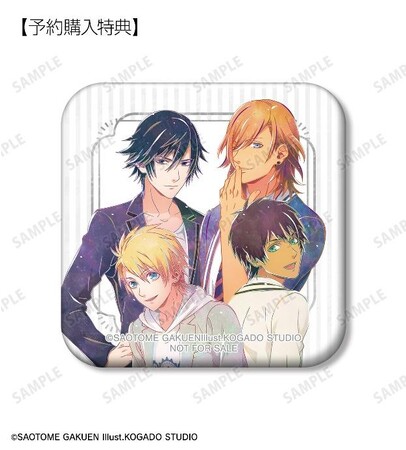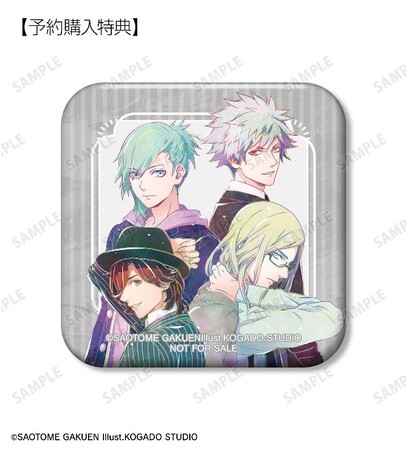 アニメイト店舗にて当商品を1BOX、または単品にて1BOX相当数ご注文ごとに、予約購入特典として「嶺二・蘭丸・藍・カミュ Ani-Art 第4弾 スクエア缶バッジ アニメイト店舗限定特典」を付属いたします。