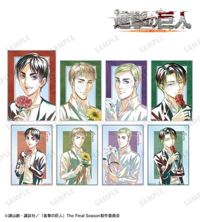 エレン、ジャン、エルヴィン、リヴァイの描き下ろしイラストを新たなタッチで魅力的に表現し、アクリルカードに仕上げました。