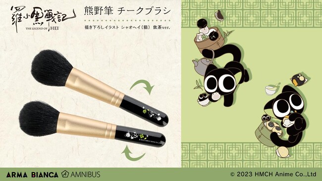 ▼描き下ろしイラスト シャオヘイ(猫) 飲茶ver. 熊野筆 チークブラシ