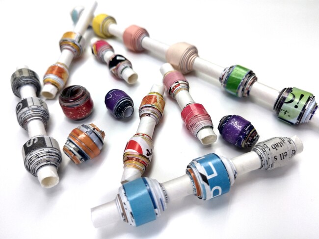 アップサイクル(創造的再利用)して古紙をペーパービーズに生まれ変わらせ、すてきなオリジナル小物を作ります。