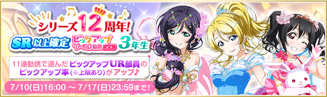 シリーズ12周年!SR以上確定ピックアップブースト勧誘~μ's~3年生