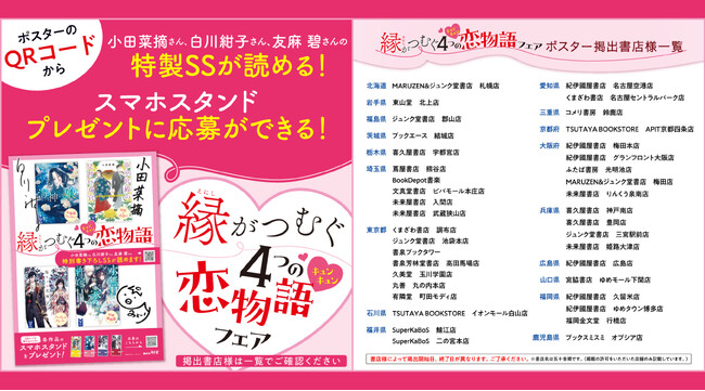 「縁がつむぐ4つのキュンキュン恋物語フェア」開催!!小田菜摘さん、白川紺子さん、友麻碧さんの特製SSが読める&スマホスタンドプレゼントに応募ができる!