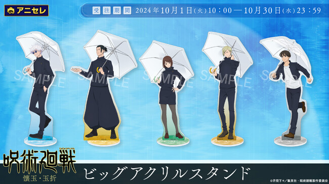 株式会社アニメイトは、受注生産商品プロジェクト『animate LIMITED SELECTION(通称アニセレ)』より、TVアニメ『呪術廻戦』第2期「懐玉・玉折」のビッグアクリルスタンド(全5種)の発売を発表いたしました。