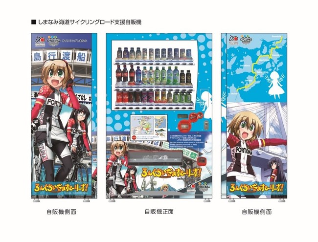 このコラボデザインの自動販売機は、しまなみ海道自転車通行料金無料化財源への協力として、売り上げの一部が寄付されます。