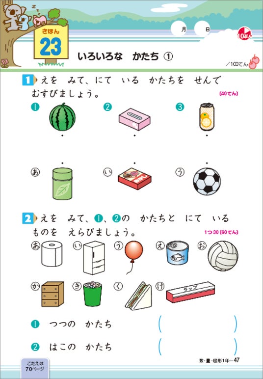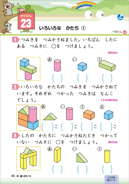 ▲1年 数・量・図形 紙面(裏面)