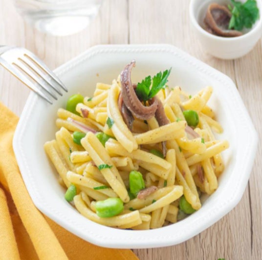 シチリア地方発祥のマカロニの一種で、S字型の断面を持つ独特なねじれた形状で、ソースがよく絡むのが特徴です。ペンネやツイストパスタより太くてもっちりとした食感で、トマトソースやクリーム系ソース、ジェノベーゼやグラタンともよく合います。