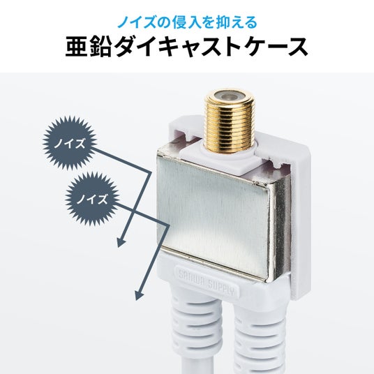 4K8K放送に対応し、亜鉛ダイキャストケースでノイズ対策もしているケーブル一体型の分波器