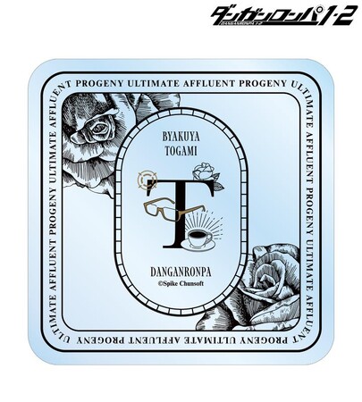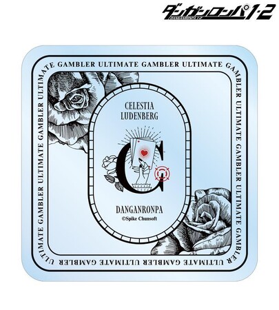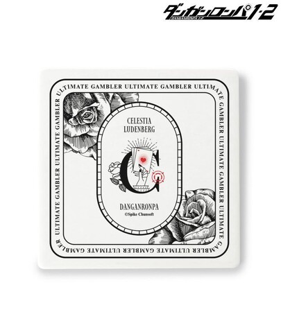 十神白夜のイニシャルの「T」、モチーフの薔薇、コーヒー、眼鏡と、セレスティア・ルーデンベルクのイニシャルの「C」、モチーフのトランプを持つセレスティアの手、薔薇をメインにデザインしました。