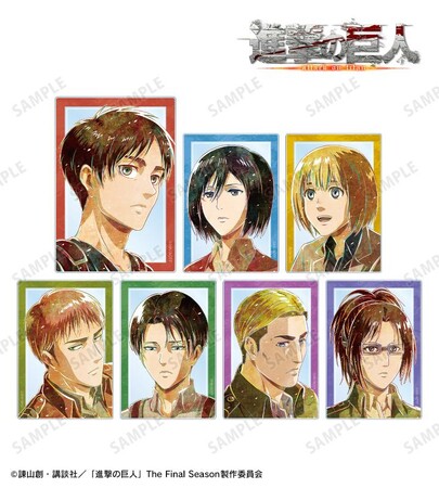エレン、ミカサ、アルミン、ジャン、リヴァイ、エルヴィン、ハンジのイラストを新たなタッチで魅力的に表現し、アクリルカードに仕上げました。