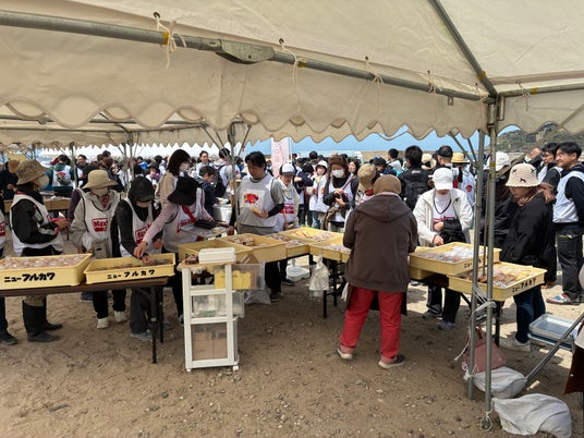 また、清掃活動後は黒島地区の皆さまが主体となり、ボランティア参加者と地元企業との交流会や物品販売も実施しました。