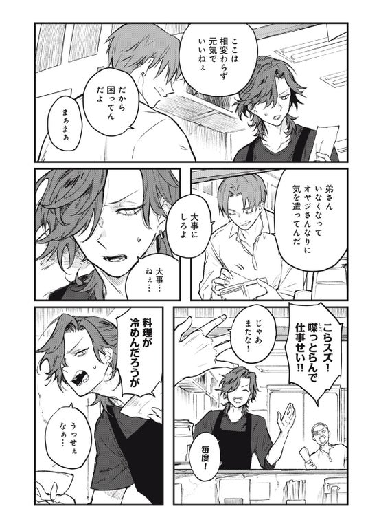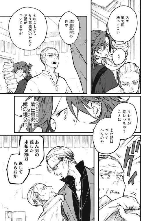 行方不明の弟を探す青年・スズは、ヤクザに絡まれたところをミステリアスな美少年・ハナに助けられる。