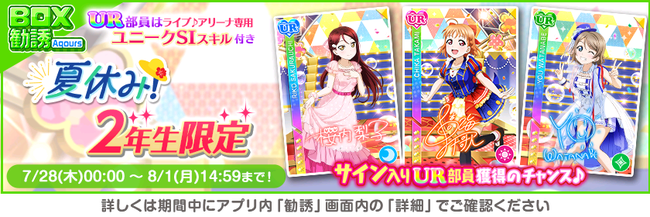 株式会社ブシロード(本社:東京都中野区、代表取締役社長:木谷高明)は、KLab株式会社(本社:東京都港区、代表取締役社長:森田英克)と共同開発いたしましたスマートフォン向けアプリ『ラブライブ!スクールアイドルフェスティバル』(以下、スクフェス) において2022スクフェス夏休みキャンペーン 第2弾の開催をお知らせいたします。