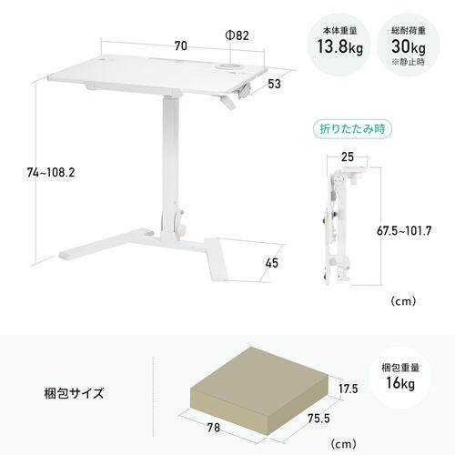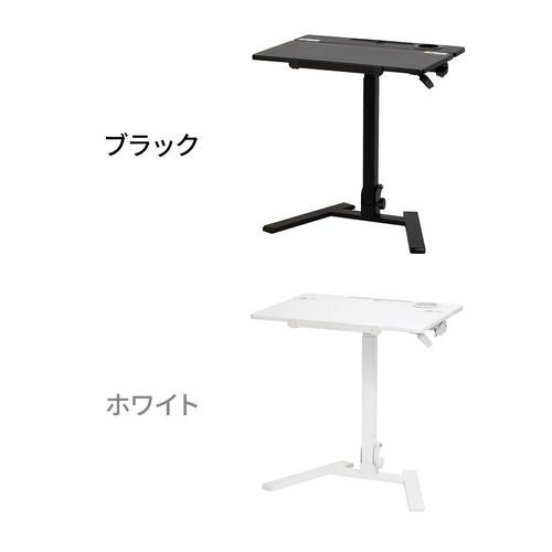 スタンディングデスク 昇降デスク ガス圧デスク 折りたたみテーブル 完成品出荷 落下防止ストッパー 天板角度調整可能 無段階調節 カップホルダー フック付き 薄さ23cm