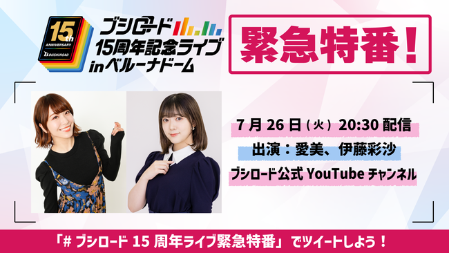 株式会社ブシロードミュージック(本社:東京都中野区 代表取締役社長:根本 雄貴)は、2022年7月26日(火)20:30より、『「ブシロード15周年記念ライブ in ベルーナドーム」緊急特番!』をブシロード公式YouTubeチャンネルにて配信することをお知らせいたします。