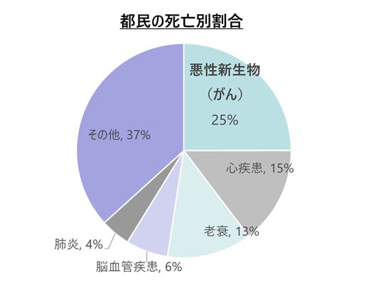 また、令和5年にがんが原因で亡くなった都民は34,276人で、死因の約4分の1を占めます。