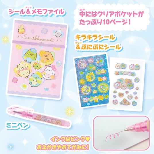 ようせいすがたのすみっコたちのデザインがかわいい(ハート) ファイル・ミニペン・キラキラシール・ぷにぷにシールがセットでとっても豪華!