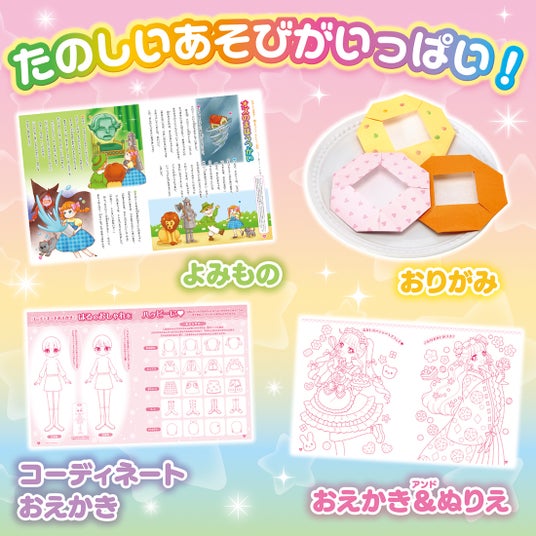 おえかきやぬりえ、めいろ、パズル、おりがみなど、子どもたちに大人気のあそびを、かわいいキャラクターたちとたっぷり楽しめる雑誌です。