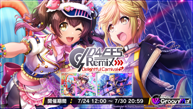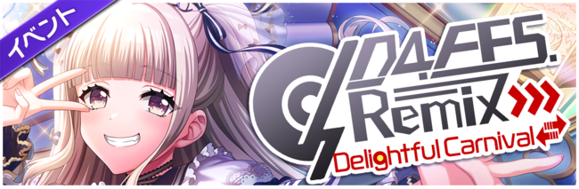 株式会社ブシロード(本社:東京都中野区、代表取締役社長:木谷高明)は、株式会社DONUTS(本社:東京都渋谷区、代表取締役:西村啓成)と共同開発のスマートフォン向けリズムゲーム「D4DJ Groovy Mix」(以下グルミク)にて、イベント&ガチャ「D4 FES.Remix -Delightful Carnival-」を開催いたします。