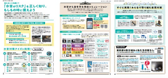 東京都では、都政や都民生活に必要な情報を伝えるため、広報紙「広報東京都」を毎月1日に発行しています。6月号は、「みんなで学ぶ、水害のこと」と題し、これから始まる本格的な梅雨や大雨に備えて、「水害リスク」への正しい知識と万が一の備えについて紹介します。注目記事は「水害から身を守る事前シミュレーション」「みんなで取り組む豪雨対策」の2つ。クイズなどもまじえながら、水害について正しい知識を深めることができる内容となっています。