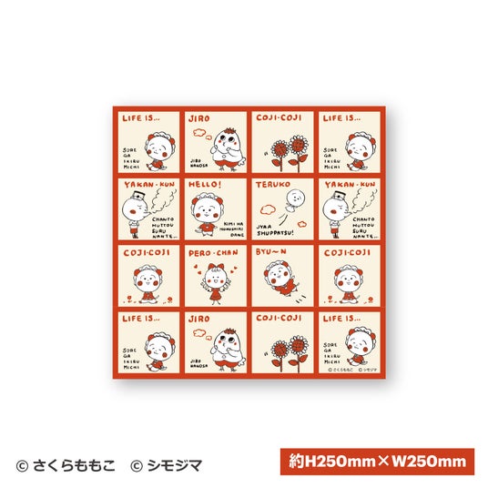 コジコジ×シモジマのイラストがプリントされたマイクロファイバー生地のハンカチです。普段使いもしやすいデザインとなっております!