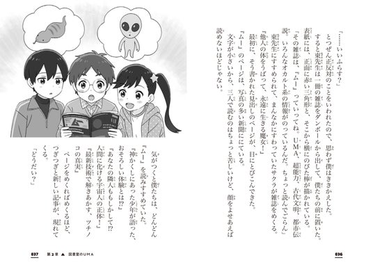 伝説のオカルト雑誌「ムー」と、出版社のGakkenがコラボした児童書シリーズ『こちら、ヒミツのムー調査団!』。月刊「ムー」に夢中な小学生3人組が、UFOや都市伝説、超常現象などの「ムー的世界」にいどむ物語だ。