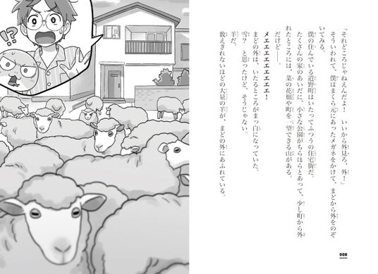 最新刊の『悪夢!?モフモフ大パニック』では「夢」がテーマ。ある朝突然、町中にヒツジの大群が発生するという衝撃的なシーンから物語は始まる。