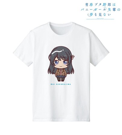 桜島麻衣、古賀朋絵、双葉理央、豊浜のどか、梓川かえで、牧之原翔子がちょこんと立っているちびキャラを新たに描き起こし、Tシャツに仕上げました。