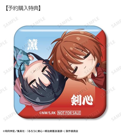 当商品を1BOX、または単品にて1BOX相当数ご注文ごとに、予約購入特典として「緋村剣心&神谷 薫 ちびころ スクエア缶バッジ AMNIBUS限定特典」を付属いたします。