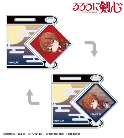 緋村剣心がころんと寝ているちびキャラを新たに描き起こし、くるくる回る一風変わったアクリルスタンドに仕上げました。