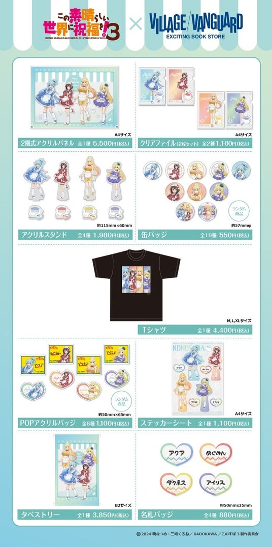 TVアニメ『この素晴らしい世界に祝福を!3』の限定グッズがヴィレッジヴァンガード限定描き下ろしイラストで登場!