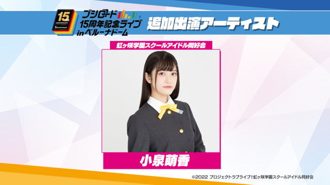 1)追加出演アーティスト発表:フェザーズ、虹ヶ咲学園スクールアイドル同好会 小泉萌香