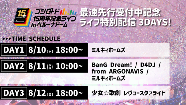 3) 「ブシロード15周年記念ライブ in ベルーナドーム」最速先行受付中記念 ライブ特別配信 3DAYS!