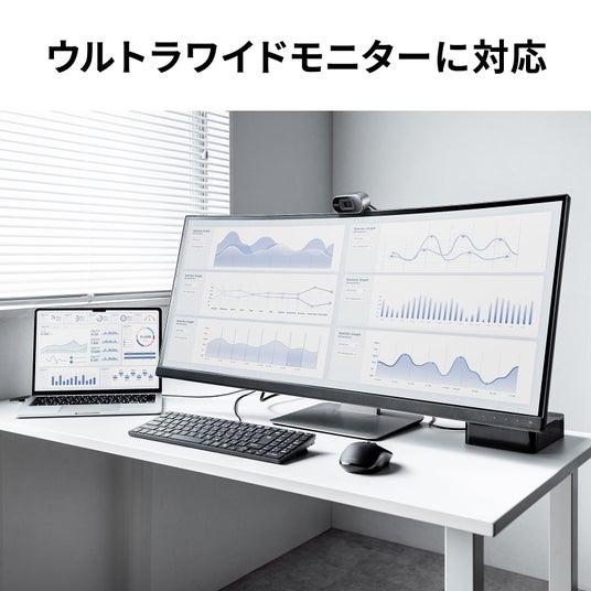 デスクスペースを最大化するとともに、接続後すぐに広大な作業領域を構築でき、業務効率を高めます。※【動作確認済みモニター】Dell U3415WB (3440×1440)