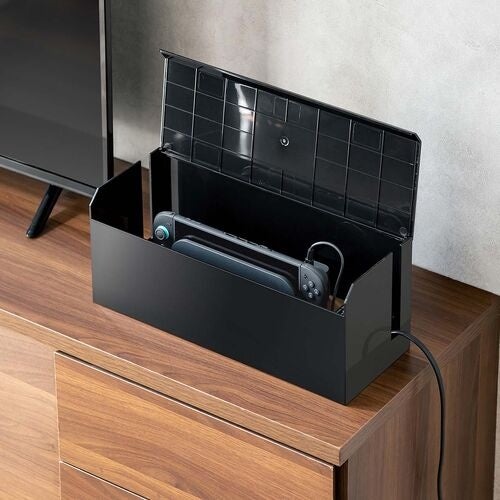 電源タップやケーブル、ゲーム機本体をスマートに収納できるケーブルボックス