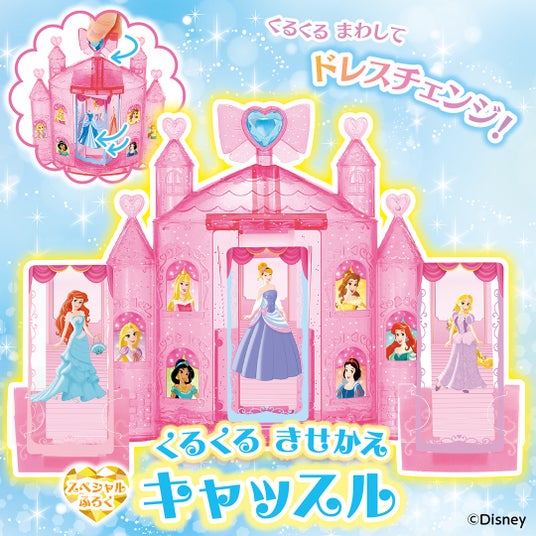 くるくる回してプリンセスのドレスチェンジができる魔法のようなしかけに、きっと夢中になるはずです。
