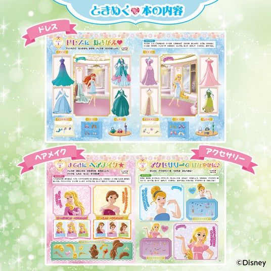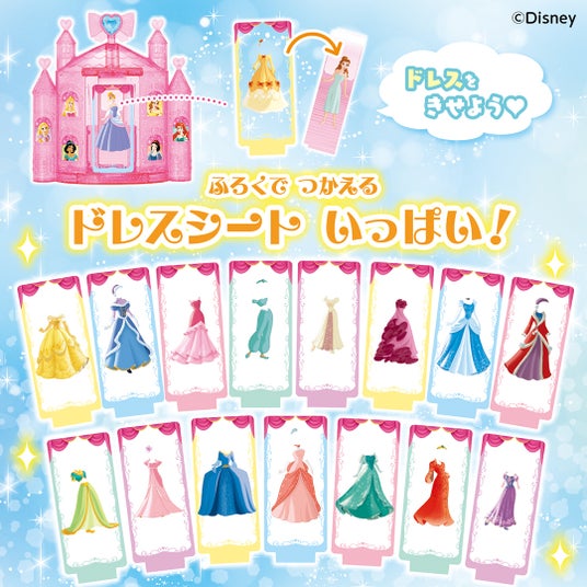 ディズニープリンセスになりきって以下のようなときめくシール遊びができます。・パーティードレスきせかえ