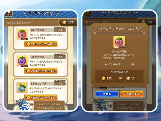 ▲クリスタルはバトルで使えるアイテムに交換できる