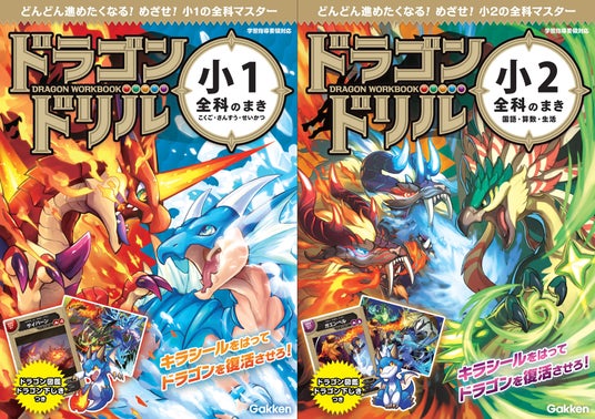 小1~4年生向けの全16巻が発売中。2023年8月30日(水)には、『ドラゴンドリル 小1全科のまき』『ドラゴンドリル 小2全科のまき』の2冊が同時発売。