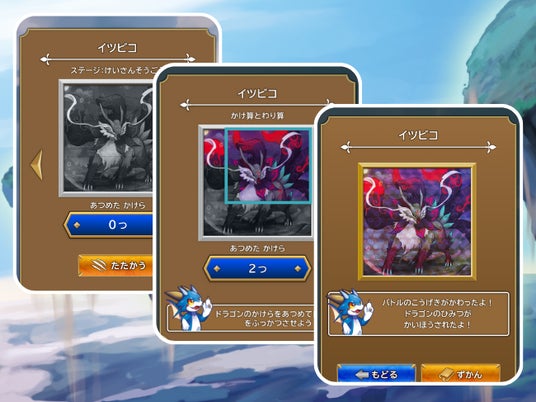 バトル形式の学習を進めて封印されたドラゴンを復活させると、そのドラゴンをなかまにすることができます。どんどん学習を進めて、かっこいいドラゴンをキミのドラゴンずかんにコレクションしよう!