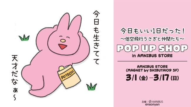 2024年3月1日(金)より「AMNIBUS STORE」にて「『今日もいい1日だった!~低空飛行うさぎと仲間たち~』 POP UP SHOP in AMNIBUS STORE」の開催が決定いたしました。
