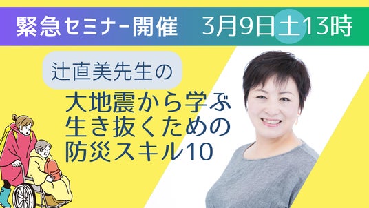 今回のセミナーは、「自分を守ることが、大事な人を護ることにもつながる」という主旨のもと、辻先生に災害を生き抜くための10のワザを解説いただきます。・災害への備えをしたいけど、どうしたらいいか、とお悩みの方